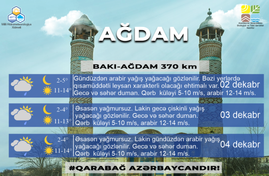Dekabrın 5-dən 6-sı səhərədək arabir yağış yağacağı, bəzi...