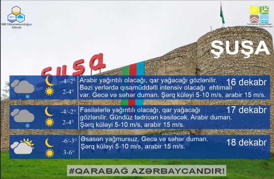 Dekabrın 16-dan 17-si gündüzədək hava şəraitinin bəzi yerlərdə...