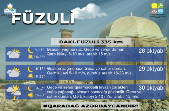 Oktyabrın 29-u axşamdan 30-u gündüzədək bəzi yerlərdə hava şəraitinin qeyri-sabit keçəcəyi,